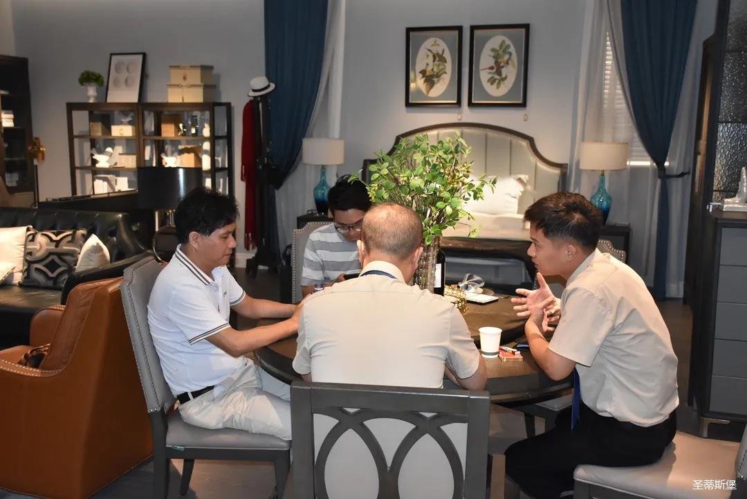 展会期间,全国家居建材连锁巨头—红星美凯龙集团郑总一行莅临圣蒂斯堡营销中心进行参观交流。集团领导热情接待,双方进行了深度洽谈,并一起参观了洛斯、里奥、洛卡等展厅。